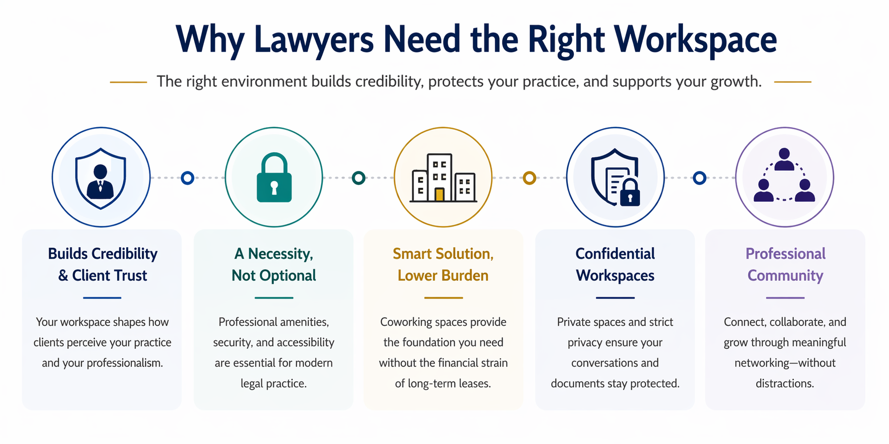 From solo practitioners to multi-attorney firms, coworking space for lawyers offers the infrastructure, image, and flexibility you need — without the burden of long-term leases or high fixed costs.